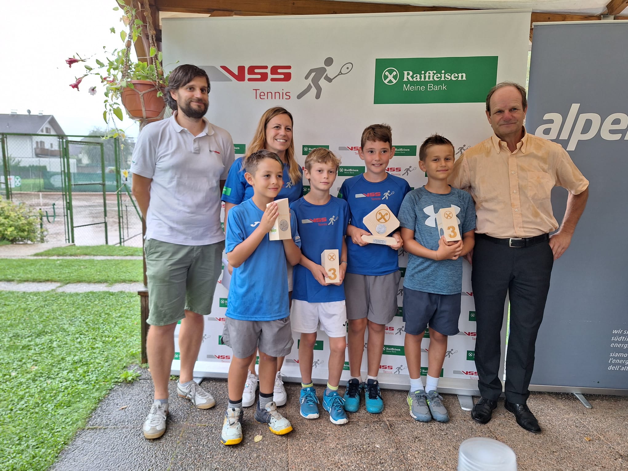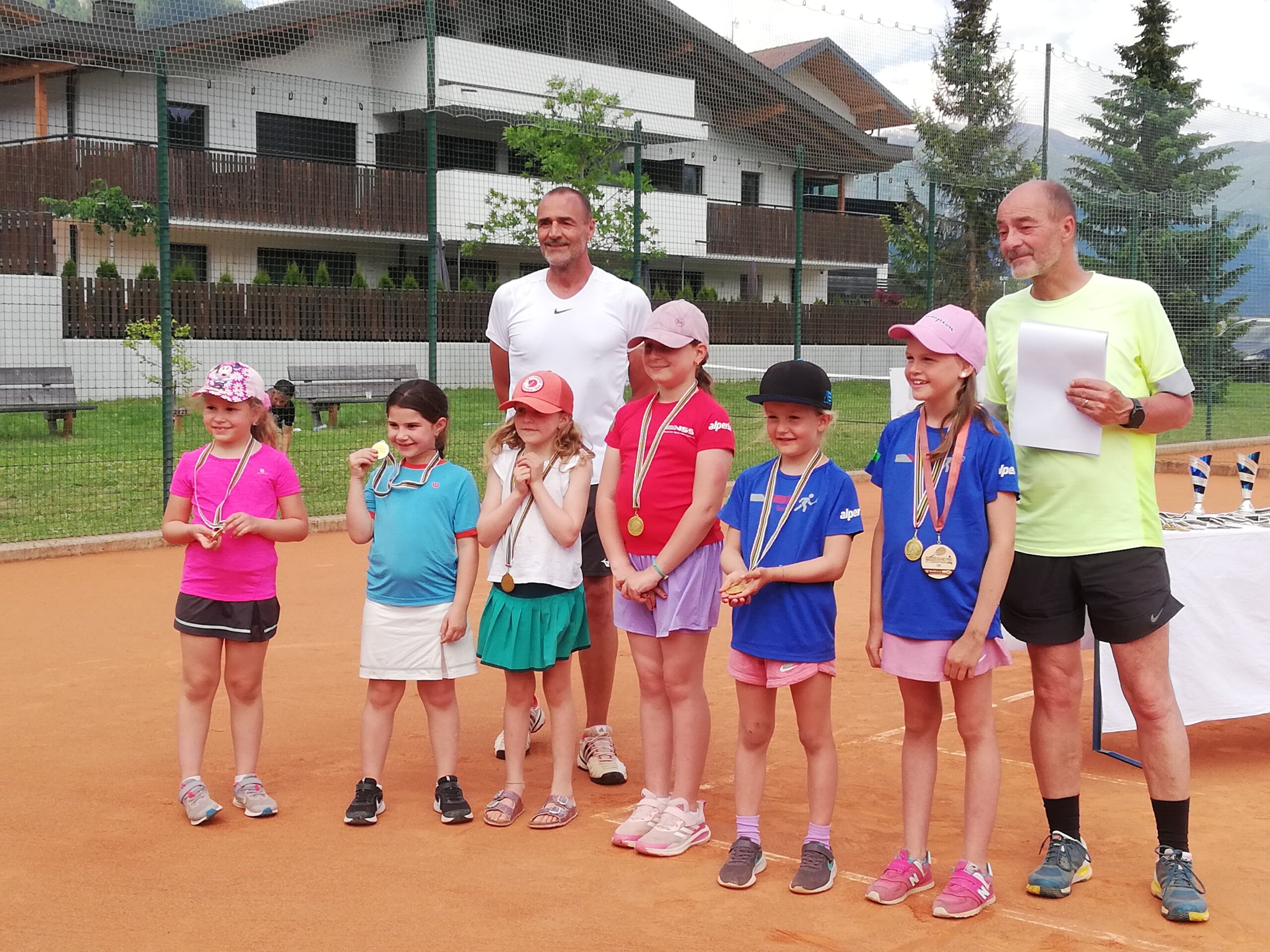 Vor einer super Zuschauerkulisse fand anschließend die Siegerehrung statt, bei welcher der Präsident des TVN den Obmann der Raiffeisenkasse Niederdorf Gerhard Rainer als Ehrengast begrüßen durfte. Dieser zeigte sich beeindruckt von der Teilnahme der vielen Kinder und lobte den Präsidenten und den gesamten Vereinsausschuss für die großartige Tätigkeit, und als Hauptsponsor sei man weiterhin bemüht, den Verein finanziell zu unterstützen. Es sei äußerst wichtig, den Kindern ein gutes Zuhause in den Vereinen zu geben, damit sie sich körperlich gesund betätigen und viele gute Freundschaften knüpfen können. Allen anwesenden Kindern wurden nach der Prämierung eine Geschenkpackung überreicht, und einige tolle Posters unseres Tennisass Jannik Sinner verlost. Dank der guten Zusammenarbeit mit der Fraktionsverwaltung von Niederdorf konnte pünktlich zum Turnierbeginn eine mobile Zuschauertribüne aus modularen Holzelementen in Empfang genommen werden. Ein großer Dank gebührt hier den Vorstandsmitgliedern der Fraktionsverwaltung, welche für den Tennisverein immer ein offenes Ohr für Verbesserungsarbeiten an der Tennisanlage zeigt. Abschließend dankte Paul Troger allen Sponsoren des TVN, welche durch den finanziellen Beitrag die Tätigkeit ermöglichen, dem Tennislehrer Cristian und seinem Staff für die gute Abwicklung des Turniers, dem Team am Grill und dem Team der Tennisbar für die gute Zusammenarbeit, allen Spieler*innen, Begleitern, Eltern und Trainern für den Einsatz und die Freude am Tennissport. Ein großer Dank geht an die Firma Loacker für die Geschenkepackungen, dem Sportverein für die Zurverfügungstellung der Zelte und dem Raiffeisenverband als Sponsor der Turnierserie. Egon Strobl „Speedy“ führte einige Interviews bei den erfolgreichen einheimischen Spielern durch.