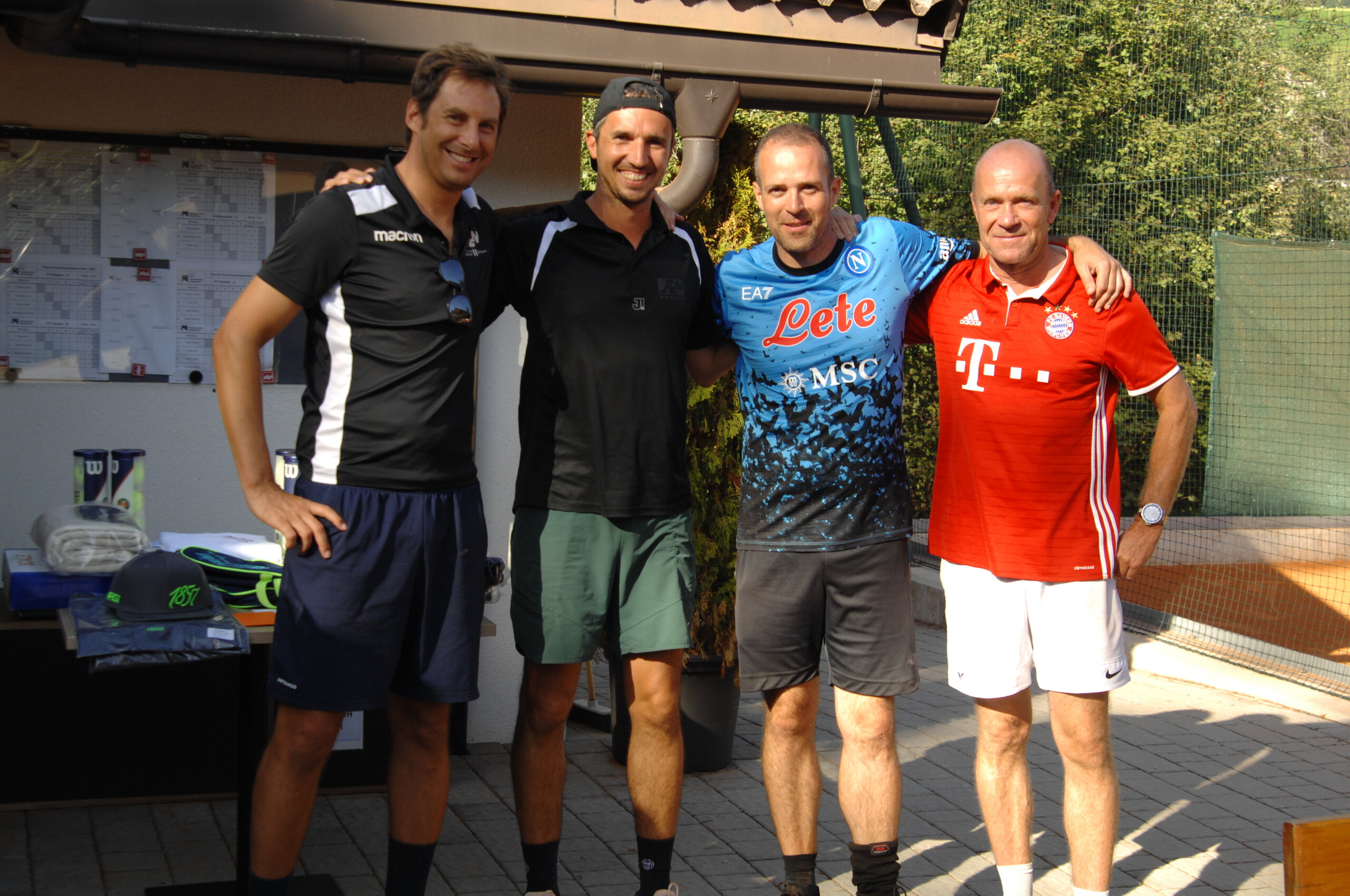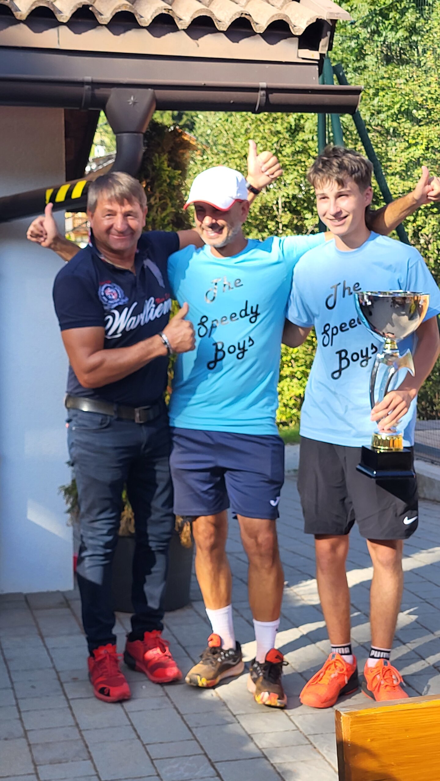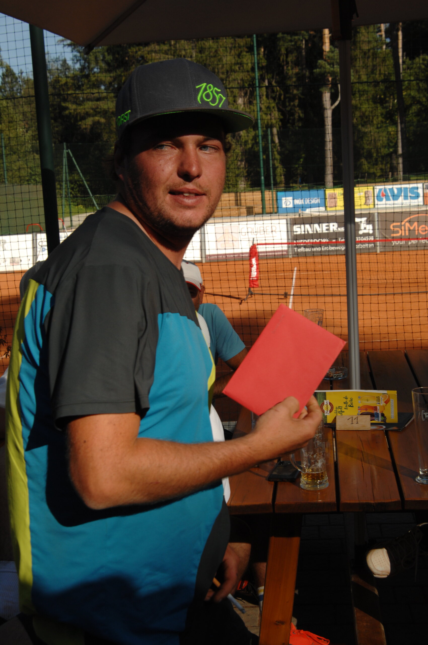 Die Sommer-Tennissaison ist mit dem gestrigen Speed-Tennis-Doppelturnier und dem „Fassl-laarn“ der Tennisbar zu Ende gegangen. Bei herrlichem Wetter hatten 16 Teams für das Turnier gemeldet. Jugend und Erwachsene, weiblich und männlich, und „Profis“ und Hobbyspieler spielten um den Turniersieg, einfach super, so formulierte es der Präsident bei der Siegerehrung. Jedes Team lautete auf einen originellen „Spitznamen“, herrliche Formulierungen standen somit auf der „Entry-List“. Die Vorrundenspiele in 4 Gruppen erfolgten um 10.30, gespielt wurde ein Satz bis 6. Die Stimmung auf und um den Platz war super, spannende Ballwechsel waren zu sehen. Angeboten wurde auch Weißwurst und Bier vom Fass , was für manche Teams entweder Stärkung oder aber auch etwas „Müdigkeit“ hervorrief. Jedenfalls standen im Viertelfinale jeweils die zwei besten Teams jeder Gruppe, und spielten auf 2 Gewinnsätze bis 4 um den Einzug ins Halbfinale. Egon Strobl „Speedy“ lies für sein Team „THE SPEEDY BOYS“ Ivan und Cristian eigene Trikots drucken, welche sie bis zum Turniersieg ohne Niederlage makellos rein trugen. Sie eliminierten im ½ Finale das Team LOS GALACTICOS (Robby und Werner) und spielten auch im Finale gegen Team ON THE LINE (Julia und Werner) groß auf. Für eine Überraschung sorgen die Brüder Thomaser Team NAPBAY (Napoli-Bayern). Im ¼ Finale eliminierten sie einen Mitfavoriten um den Turniersieg, Team CHIP&CHOP (Andy und Alex) in drei Sätzen, und im ½ verloren sie knapp im 3. Satz gegen Team ON THE LINE.