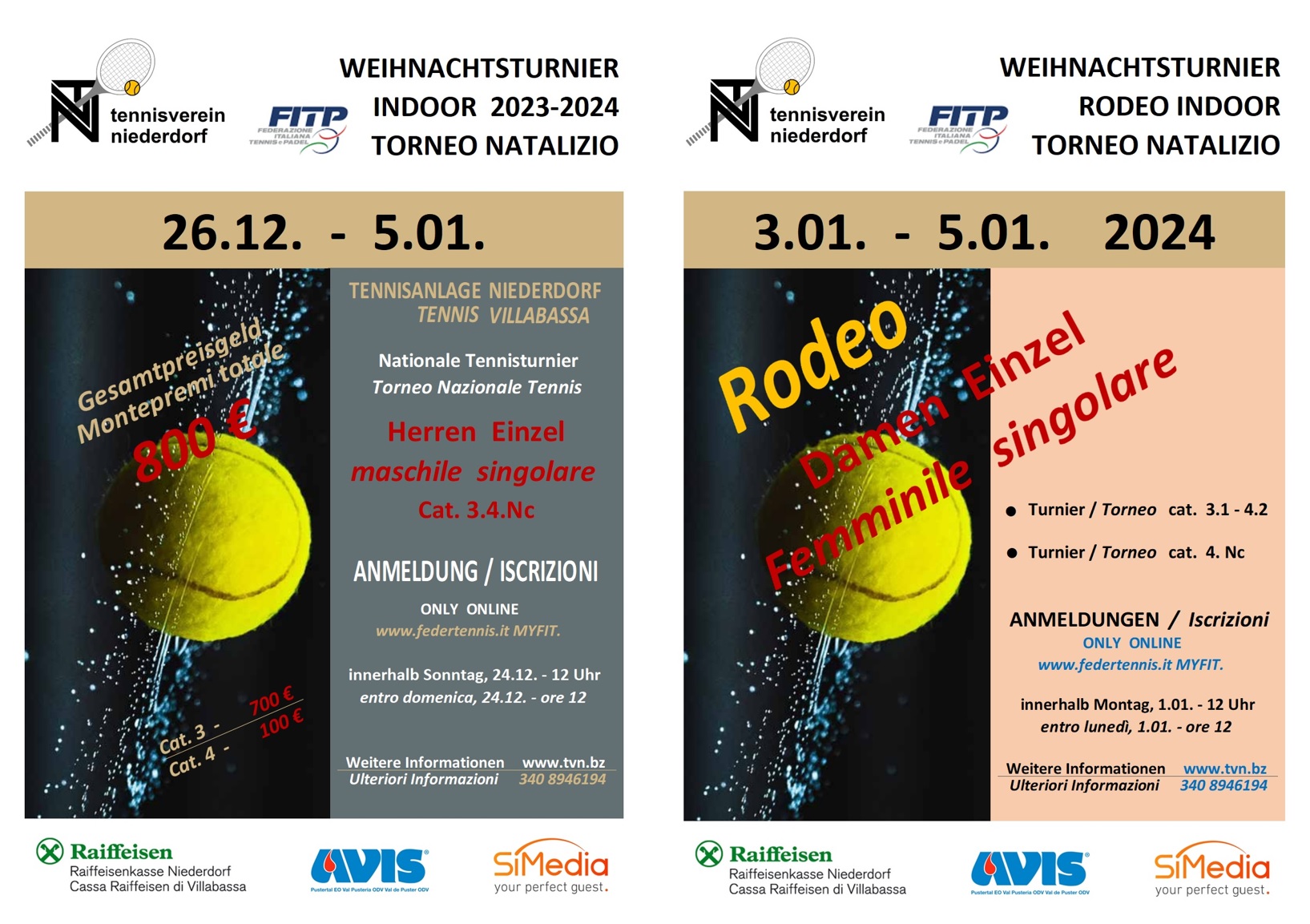 Zum 5. Mal richtete der Tennisverein Niederdorf das Indoor-Weihnachtsturnier für Spieler der Kategorie 3.4.Nc aus. 14 Spieler starteten von ganz hinten und ermittelten 4 Qualifikanten für den Zwischenraster, welcher mit 31 Spielern sehr stark besetzt war und viele spannende und enge Spiele mit sich brachte, denn der Spielplan sah vor, dass aus dem Zwischenraster sich wiederum 4 Spieler für den Hauptraster qualifizieren konnten. Für sieben Niederdorfer Spieler war hier leider Endstation, vor allem für die Jugendspieler Manuel Basso und den Brüdern Jonas und Simon Irenberger waren die Niederlagen nicht leicht zu verdauen. Im ersten Hautraster der 3. Kategorie gab es durchwegs Favoritensiege, Harald Salcher, Franz Mair und Pietro Ferriolo sicherten sich einen Platz im Endraster. Lukas Crepaz, an Nummer 1 gesetzt hatte bis ins Finale seine Spiele klar gewonnen. Thomas Auer an Nummer 2 hatte im Halbfinale gegen Hannes Christanell nicht viel entgegen zu setzen und verlor in zwei Sätzen 6-2 6-0. Im Finale standen sich dann Christanell und Crepaz gegenüber und schon nach den ersten Ballwechsel war klar, dass beide den Titel holen wollten. Keiner der beiden konnte einen entscheidenden Vorsprung herausspielen. So ging es in den Tie-Break. Tolle und hochklassige Ballwechsel konnten die anwesenden Zuschauer miterleben. Den ersten Satz holte sich Crepaz denkbar knapp mit 7-6. Auch im zweiten Satz änderte sich das Bild kaum oder gar nicht. Christanell ließ sich nicht abschütteln, obwohl der Satz mit Break auf beiden Seiten begann. Und auch dieser Satz musste beim Stand von 6-6 in einem Tie-Break entschieden werden. Christanell hätte sich durch einen Volley am Netz entscheidend in Front bringen können, doch der Schlag landete im Netz, und auch der nächste Fehler von Hannes brachte Crepaz den ersten Matchball. Ein sicherer Aufschlag und ein Returnfehler von Hannes bedeutete den 1. Sieg in Niederdorf für Luki Crepaz. Der Sieg beim Finale der Kategorie 4 ging kampflos an Giulio Magistri.