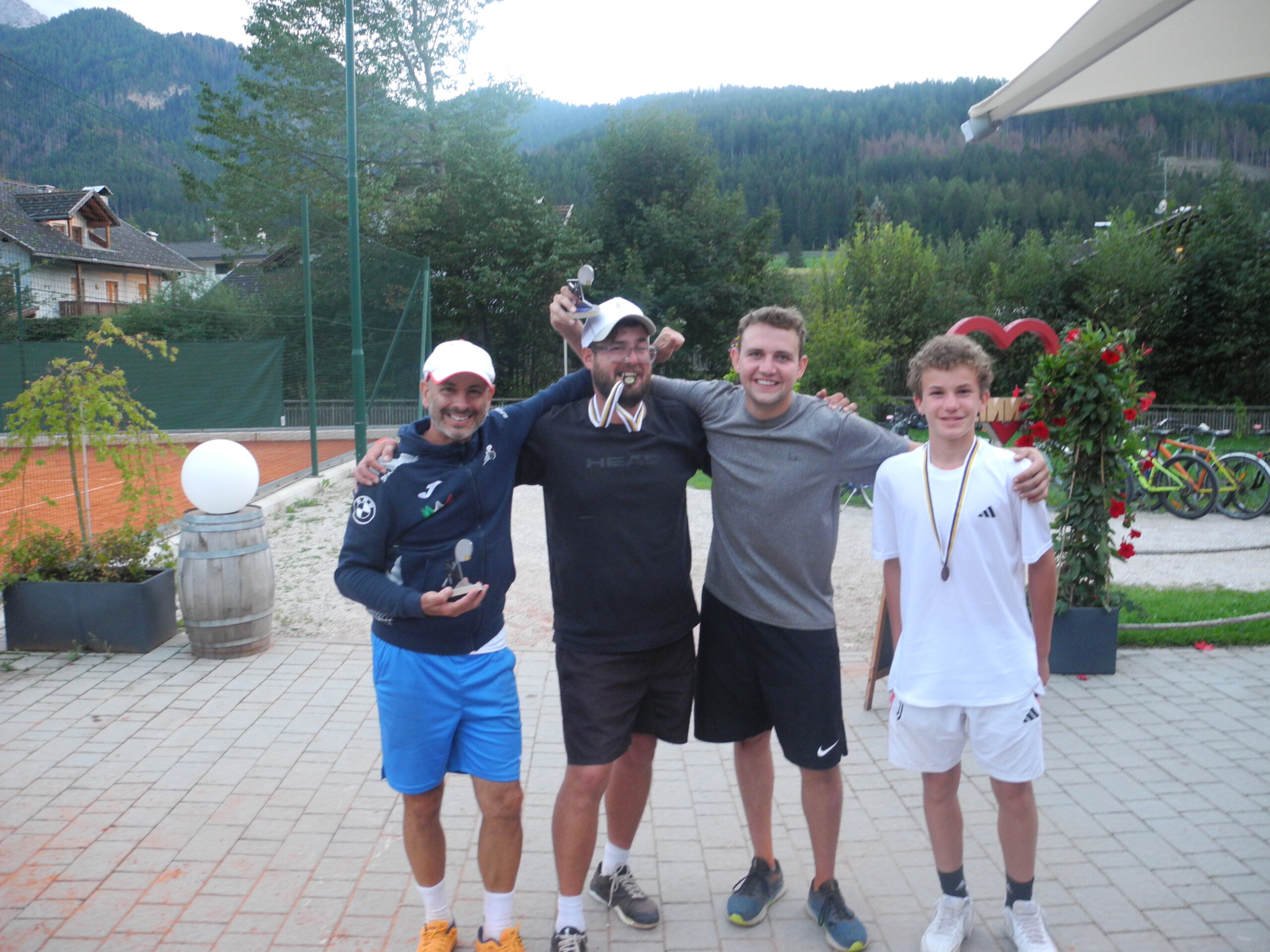 Am Freitag, 6. September waren die Finalis angesagt. In der Kategorie Hobby-Spieler standen sich Michael „Michi“ Prenn und Giovanni Dal Cin gegenüber. Giovanni hatte einen guten Start, zwang Michi immer wieder zu unerzwungenen Fehlern und holte sich den ersten Satz mit 6:3. Auch im zweiten Satz hatte Giovanni mehr oder weniger das Ruder in der Hand, und so kam er beim Stande von 5:4 und 40:0 zu seinen ersten drei Matchbällen. Was dann in Giovanni Kopf sich abspielte, kann wahrscheinlich selbst er nicht sagen, Fakt ist, dass Michi sich nicht beirren ließ, vor der tollen Zuschauerkulisse die folgenden Punkte mit druckvollem Spiel für sich entschied und auf 5:5 ausglich. Giovanni ließ nicht locker, fand wieder zu seinem Spiel erhöhte auf 6:5, erspielte sich einen, dann noch einen Matchball, konnte diese aber nicht zum Sieg verwerten. Leider kommt es im Sport nicht selten vor, dass, wer seine Chancen nicht nutzt, es hart büßen muss. Und dem war dann so; Michi siegte im Tiebreak glatt mit 7:0 im dritten Satz den Champions-Tiebreak mit 10:3. Gratulation zum Vereinsmeister der Kategorie HOBBY: JONAS PEINTNER ! Bravo Giovanni.